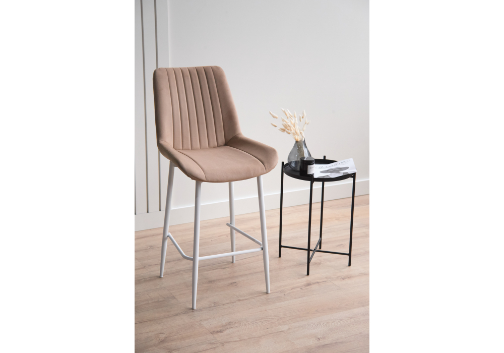 Материал каркаса - металл; Материал сиденья - велюр; Материал обивки - велюр; Цвет ножек - белый; Ширина - 49; Глубина - 57; Высота - 102; Ширина сиденья - 47; Глубина сиденья - 41; Высота сиденья - 63;