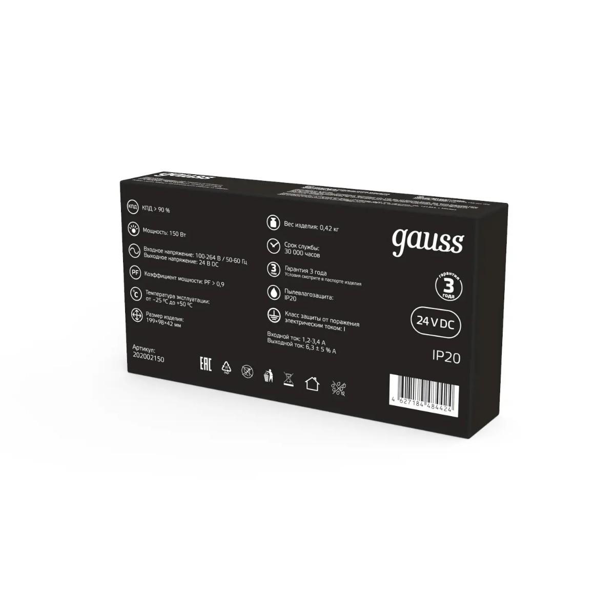 Блок питания Gauss 150W 24V IP20 202002150 в Благовещенске