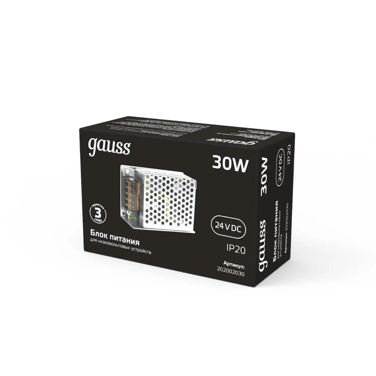 Купить "Блок питания Gauss 30W 24V IP20 202002030"