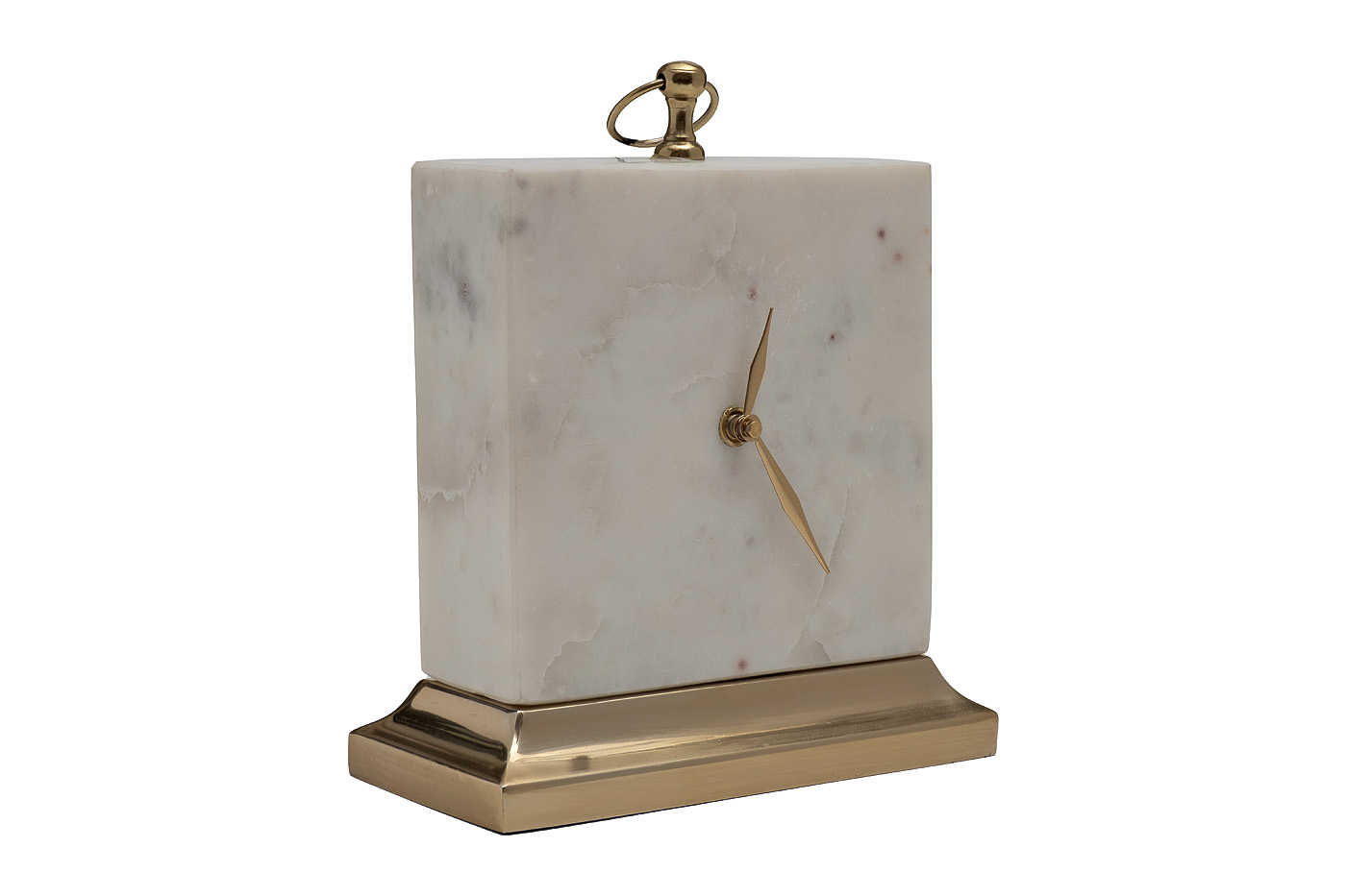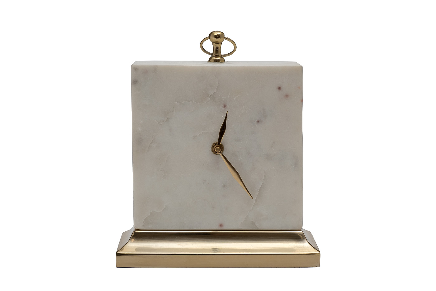 Изысканные настольные часы из натурального мрамора станут стильным украшением рабочего стола в кабинете руководителя или консоли в гостиной, оформленной в стиле ар-деко или неоклассики. Лаконичная форма с четкими гранями, благородная фактура камня, сдержанный декор из полированного металла создают впечатление устойчивости и надежности. Часы из мрамора – это не только функциональный предмет, но и символ вечности и непреходящих ценностей.