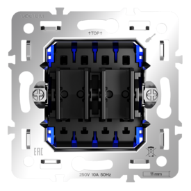 Выключатель встраиваемый двухклавишный с подсветкой 10А Voltum S70 VLS020201 (белый глянцевый)