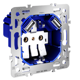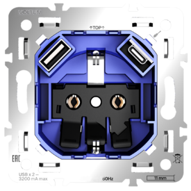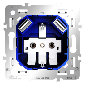 Механизм розетки с заземлением и защитными шторками 16А, с USB A+A, S70 Voltum S70 VLS0404M