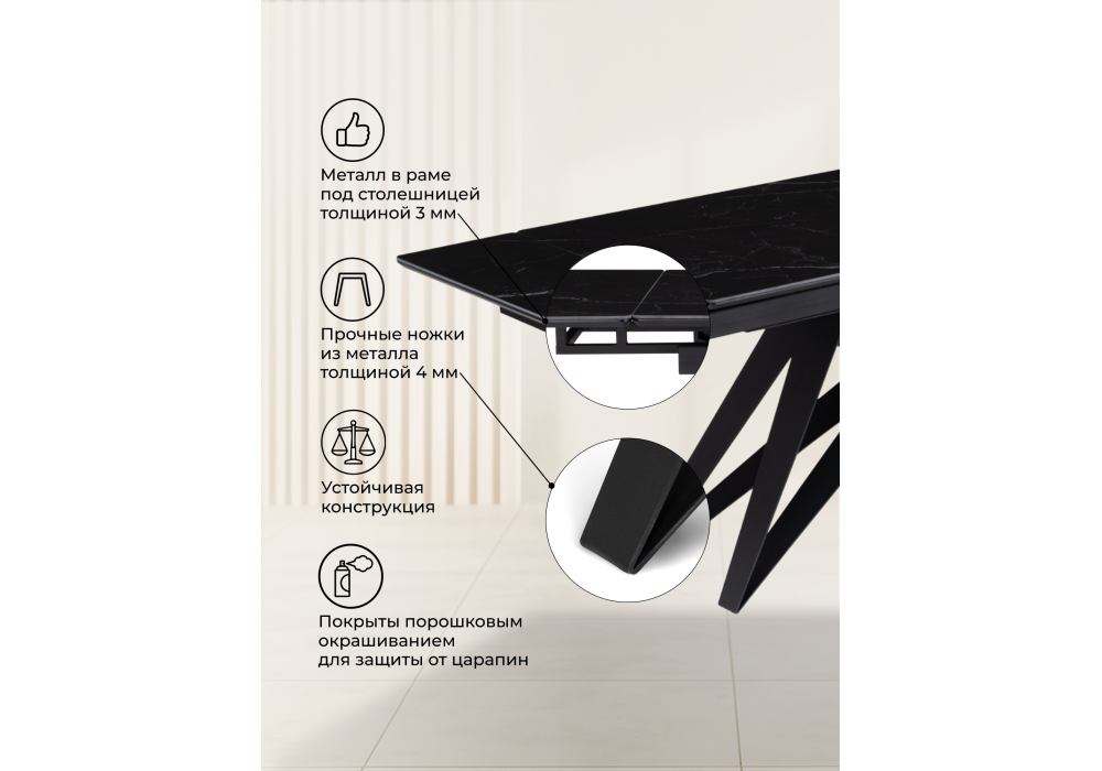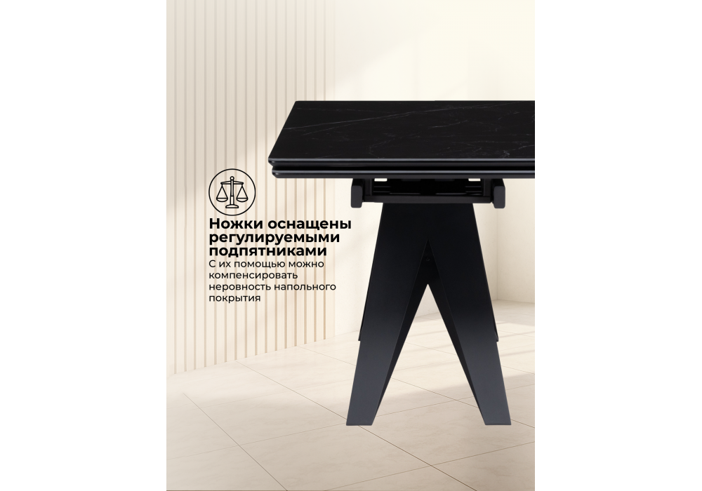 Материал каркаса - металл; Материал столешницы - Керамика; Ширина - 80; Высота - 73; Длина стола в разложенном виде - 200; Длина - 140;
