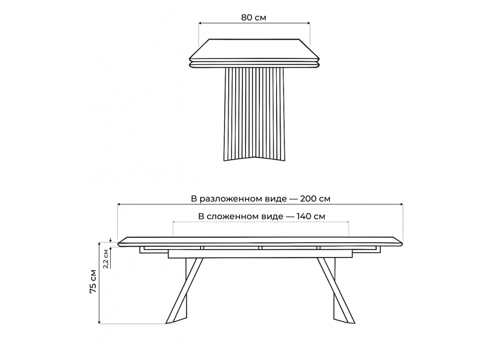 - Длина стола в разложенном виде: 2000