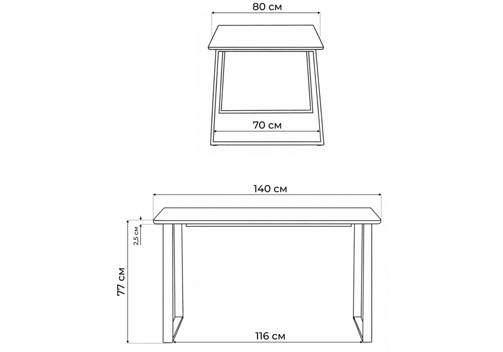 Толщина столешницы: 2,5 см. Материал каркаса - металл; Материал столешницы - Керамика; Ширина - 80; Высота - 77; Длина - 140;