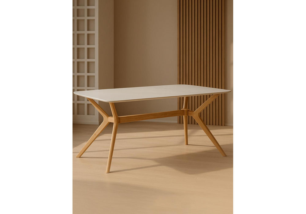 Этот стол сочетает в себе инновационные материалы и природную теплоту натурального дерева. Спеченный камень обеспечивает невероятную практичность, а массив гевеи дарит интерьеру уют и респектабельный вид. Идеальное решение для тех, кто ценит долговечность, естественность и стиль.
