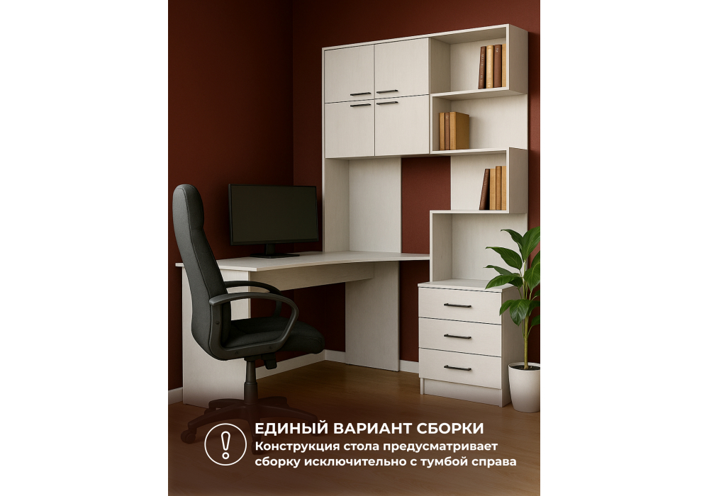 Компьютерный стол левый Woodville Эльброни белый 664904 в Благовещенске