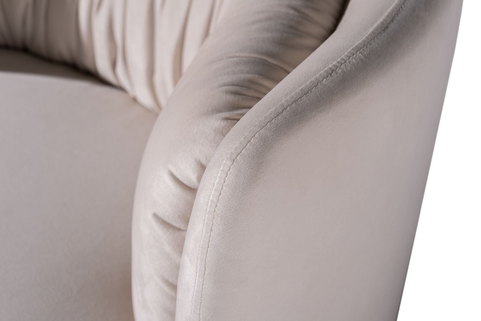 Эффектное поворотное кресло округлой формы – пример дизайнерской мебели, в которой сочетается высокий комфорт, превосходное качество исполнения и оригинальный дизайн. Эргономичная форма, низкая спинка, обивка из приятного на ощупь велюра, поворотный механизм – это бежевое велюровое кресло воплощает актуальные тренды интерьерной моды. Оно будет уместно смотреться в интерьерах ар-деко, шебби-шик, неоклассика, модерн. Благодаря каркасу из дерева и качественной обивке дизайнерское округлое кресло прослужит долгие годы.