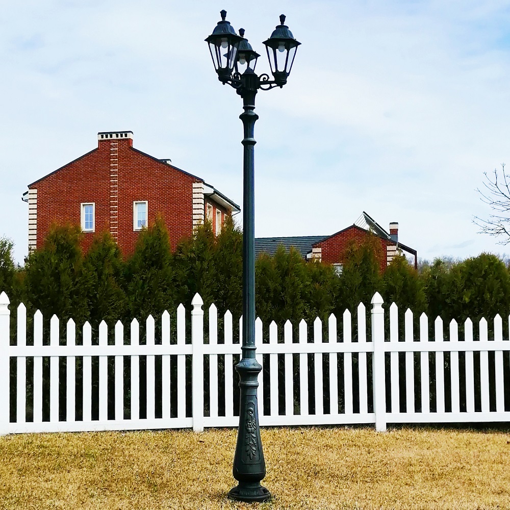 Парковый фонарь FUMAGALLI среднего размера серии RUT, модель NEBO BISSO/RUT 3L. Парковый фонарь с 3 светильниками, на консолях BISSO малого размера, установленных на классическом столбе NEBO высотой 2,5 м (+высота фонарей на кронштейнах). Изготовлены в Италии, по уникальным технологиям "FUMATECH" из современного композитного полимера RESIN. Этот материал в 5 раз прочнее металла, не ржавеет, не окисляется, не выгорает на солнце, его не нужно красить. Все светильники пыле-влаго защищены по стандарту IP55 (Пылезащищенные, защита от водяных струй с любого направления). Рассеиватель выполнен из антивандального, не мутнеющего и не горючего PMMA (ПолиМетилМетаАкрилат). Срок службы светильника - не менее 20 лет. Температура использования от -60 до +90. В серии RUT есть садовые фонари в настенном (OFIR/RUT, MIRRA/RUT) подвесном (SICHEM/RUT) и наземном исполнении (IAFAET.R/RUT, ALOE.R/RUT, ARTU/RUT, GIGI/RUT, RICU/RUT, NEBO/OFIR/RUT 1L, NEBO/OFIR/RUT 2L, TABOR/ADAM/RUT 3L) со столбами разной высоты, с разным количеством и конфигурацией голов. Консоли настенных фонарей и кронштейны светильников на столбах освещения могут устанавливаться в положение вверх и вниз.Столбы выше 150 см имеют в основе мощную стальную трубу с двойной оцинковкой. При заказе требуется выбрать цвет корпуса, цвет плафона. По стилю и дизайну серия уличных светильников RUT похожа на светильники большого размера серии NOEMI и малого размера серии ANNA . По размеру относится к средним парковым светильникам как серия CEFA и GLOBE 300.
