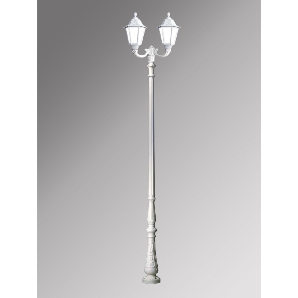 Парковый фонарь FUMAGALLI большого размера серии NOEMI, модель TABOR OFIR/NOEMI 2L. Парковый фонарь с 2 светильниками большого размера, на консолях OFIR среднего размера, установленных на классическом столбе TABOR высотой 3,0 м (+высота фонарей на кронштейнах). Изготовлены в Италии, по уникальным технологиям "FUMATECH" из современного композитного полимера RESIN. Этот материал в 5 раз прочнее металла, не ржавеет, не окисляется, не выгорает на солнце, его не нужно красить. Все светильники пыле-влаго защищены по стандарту IP55 (Пылезащищенные, защита от водяных струй с любого направления). Рассеиватель выполнен из антивандального, не мутнеющего и не горючего PMMA (ПолиМетилМетаАкрилат). Срок службы светильника - не менее 20 лет. Температура использования от -60 до +90. В серии NOEMI есть садовые фонари в настенном (OFIR/NOEMI, MIRRA/NOEMI) подвесном (SICHEM/NOEMI) и наземном исполнении (IAFAET.R/NOEMI, ALOE.R/NOEMI, ARTU/NOEMI, GIGI/NOEMI, RICU/NOEMI, NEBO/OFIR/NOEMI 1L, NEBO/OFIR/NOEMI 2L, TABOR/ADAM/NOEMI 3L) со столбами разной высоты, с разным количеством и конфигурацией голов. Консоли настенных фонарей и кронштейны светильников на столбах освещения могут устанавливаться в положение вверх и вниз. Столбы выше 150 см имеют в основе мощную стальную трубу с двойной оцинковкой. При заказе требуется выбрать цвет корпуса, цвет плафона и тип патрона (Е-27 или LED GX-53). Возможен светодиодный вариант. По стилю и дизайну серия уличных светильников NOEMI похожа на светильники среднего размера серии RUT и на светильники малого размера серии ANNA. По размеру относится к большим парковым светильникам как серия SIMON и GLOBE 400.