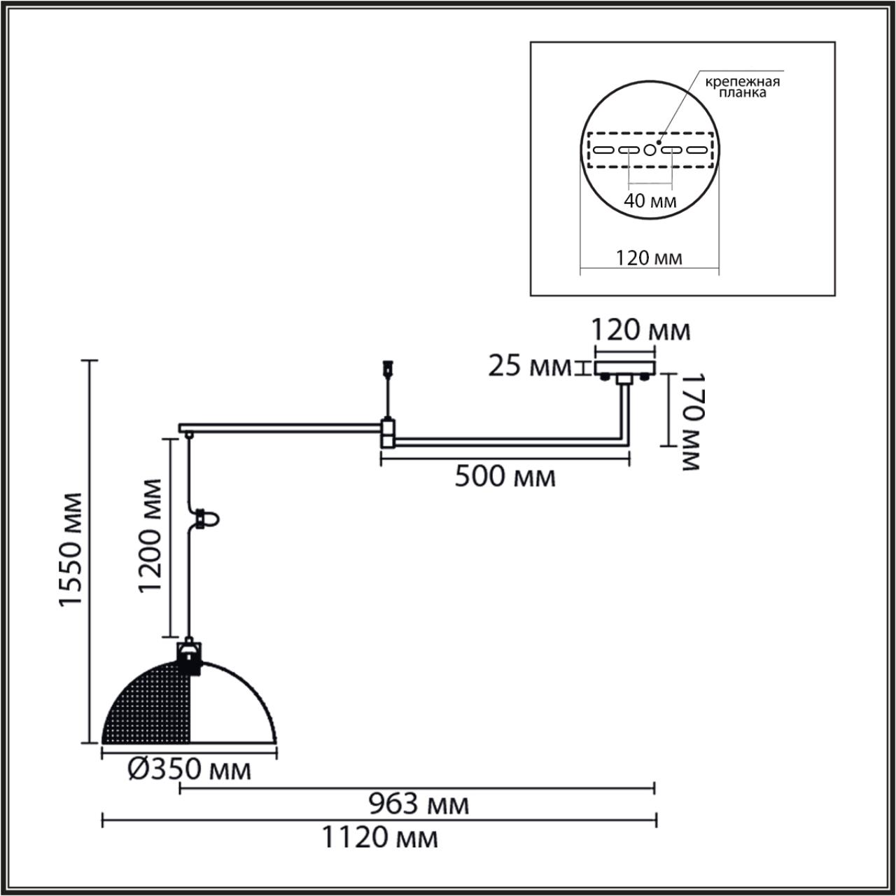 - Форма плафона: Полукруг