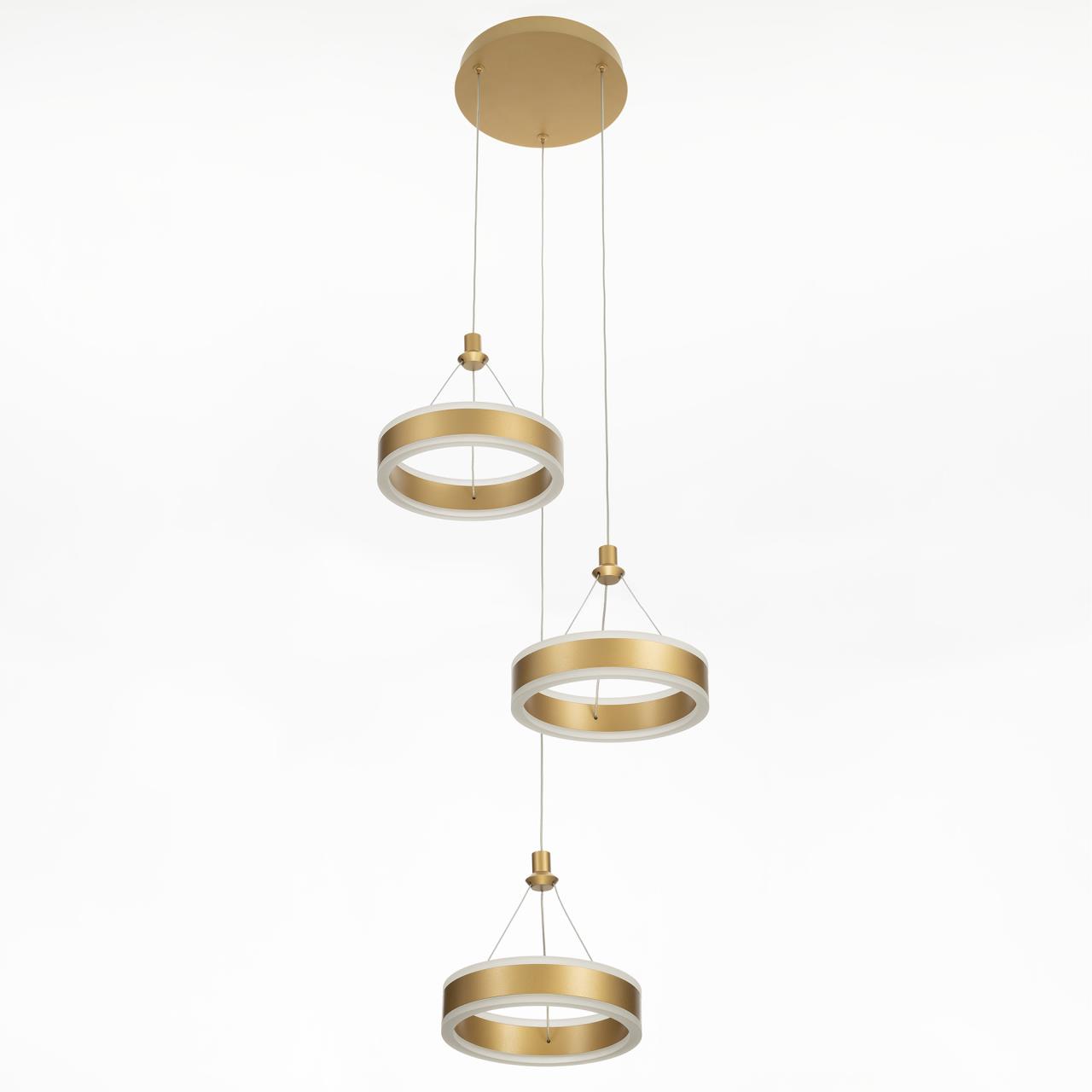 Светодиодный каскадный светильник CL719032 от производителя Citilux принадлежит серии Дуэт выполнен в современном стиле. Корпус металлический, цвет благородное золото. Светильник состоит из круглого основания и трёх подвесных колец. Кольцо - светодиодный модуль, корпус изготовлен из алюминиевого профиля, рассеиватель из оптического полимера. Наличие источников света с двух сторон профиля позволяет равномерно осветить всё помещение. Изделие оснащено встроенным ступенчатым диммером, три уровня яркости – 100-40-15%, управляется обычным настенным выключателем. Мощность 60Вт, цветовая температура 4000К - нейтральный белый свет без мерцания и пульсаций. Крепление подходит для всех видов потолков, в том числе натяжных, тип крепления – планка , страна бренда Дания.Купить модель CL719032 спешите в интернет-магазине 220svet.
