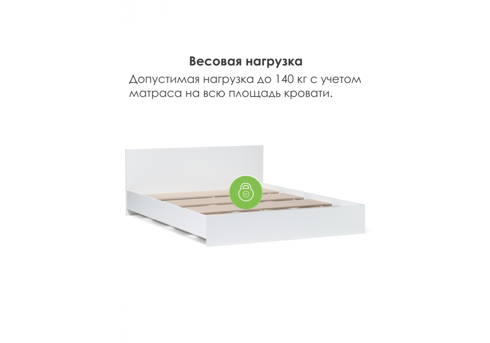 Материал каркаса - ЛДСП; Материал ортопедического основания - настил; Ширина - 143,5; Размер спального места - 140 x 200 см; Длина кровати - 203,2; Ширина кровати - 143,5; Высота изголовья - 70; Длина - 203,2;