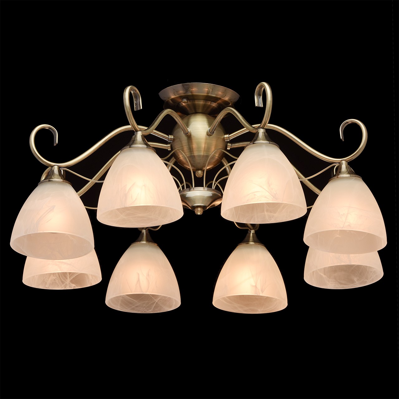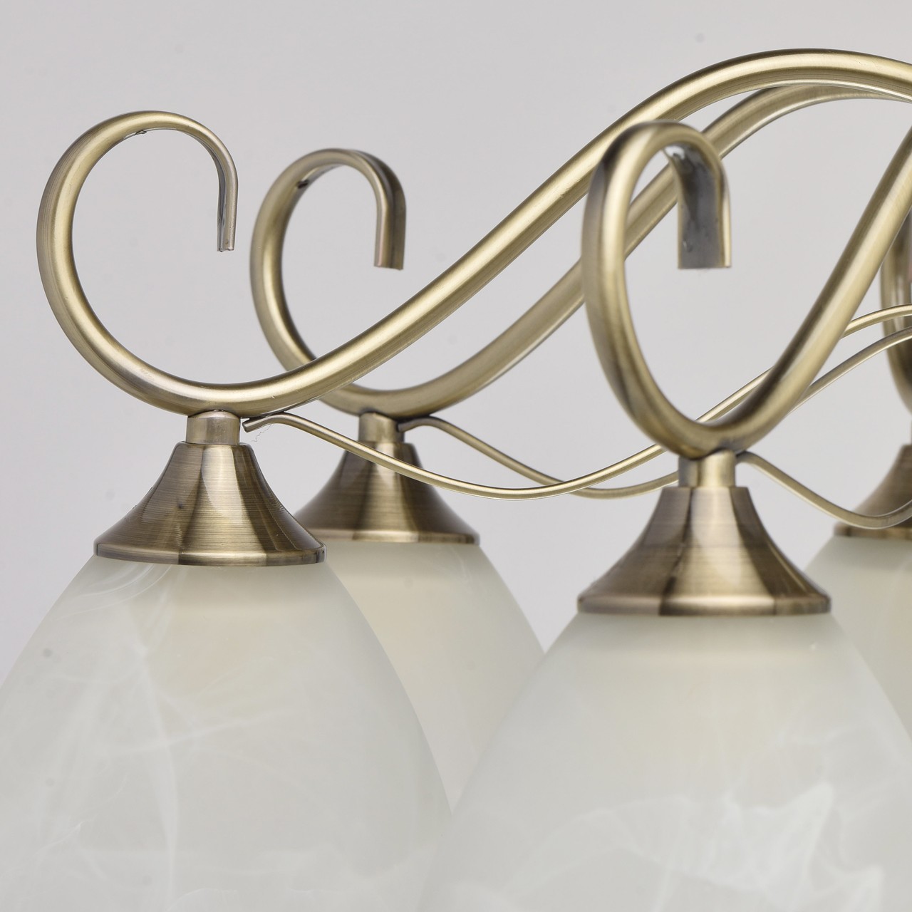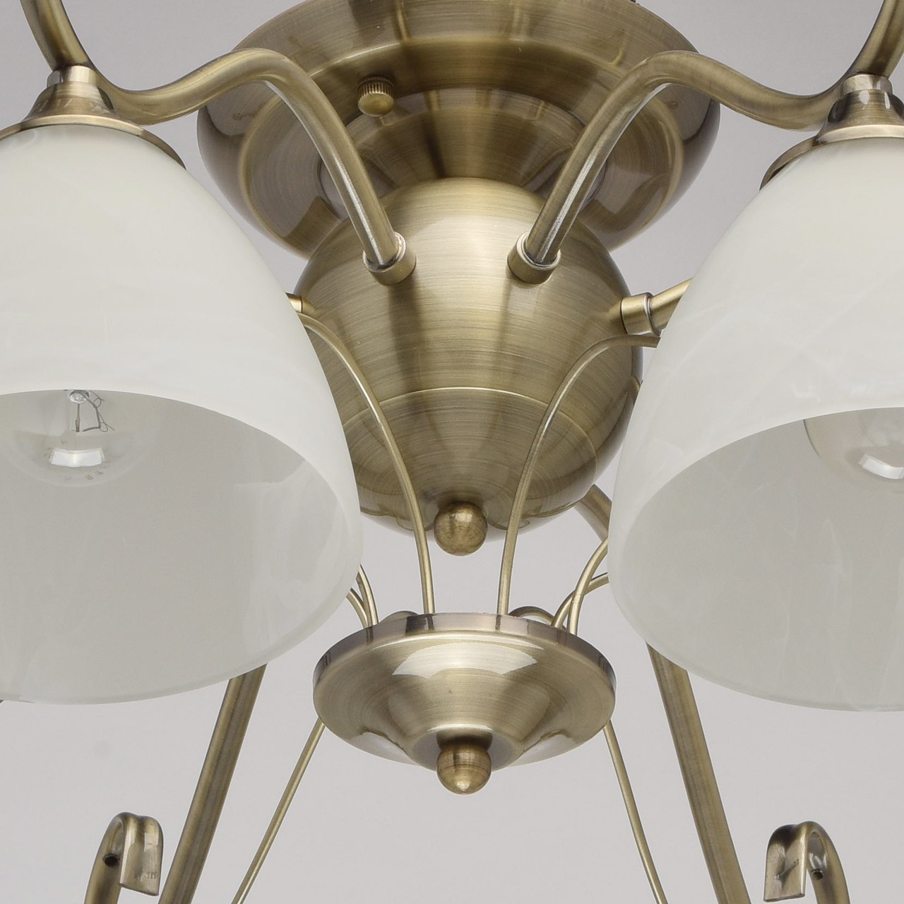 Основание: металл, гальванизирован в цвет античной бронзы.Плафоны: алебастровое стекло, отлито в форму; матирование.