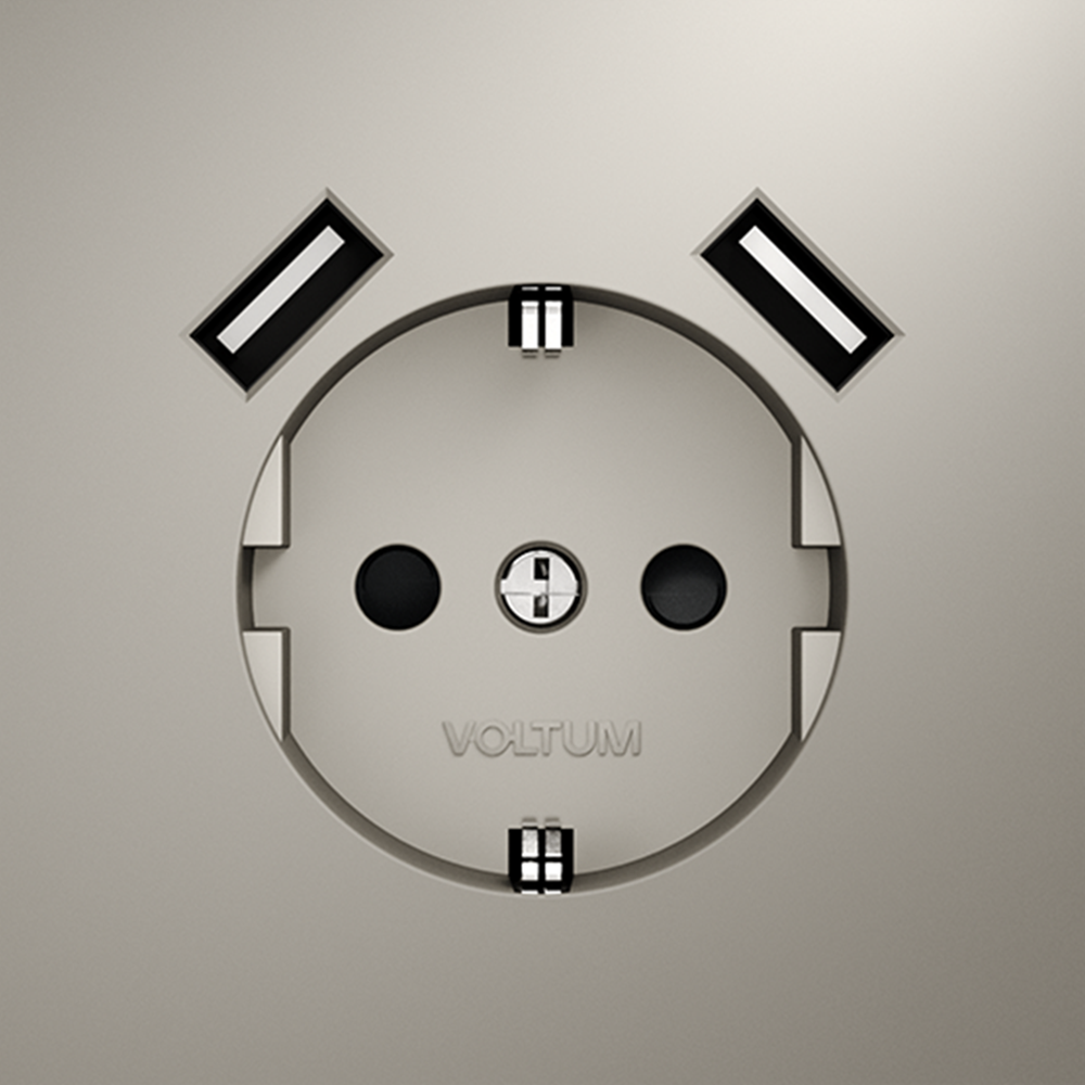 Купить "Розетка встраиваемая с заземлением и защитными шторками, 16А, с USB, A+A Voltum S70 VLS040403 (кашемир)"