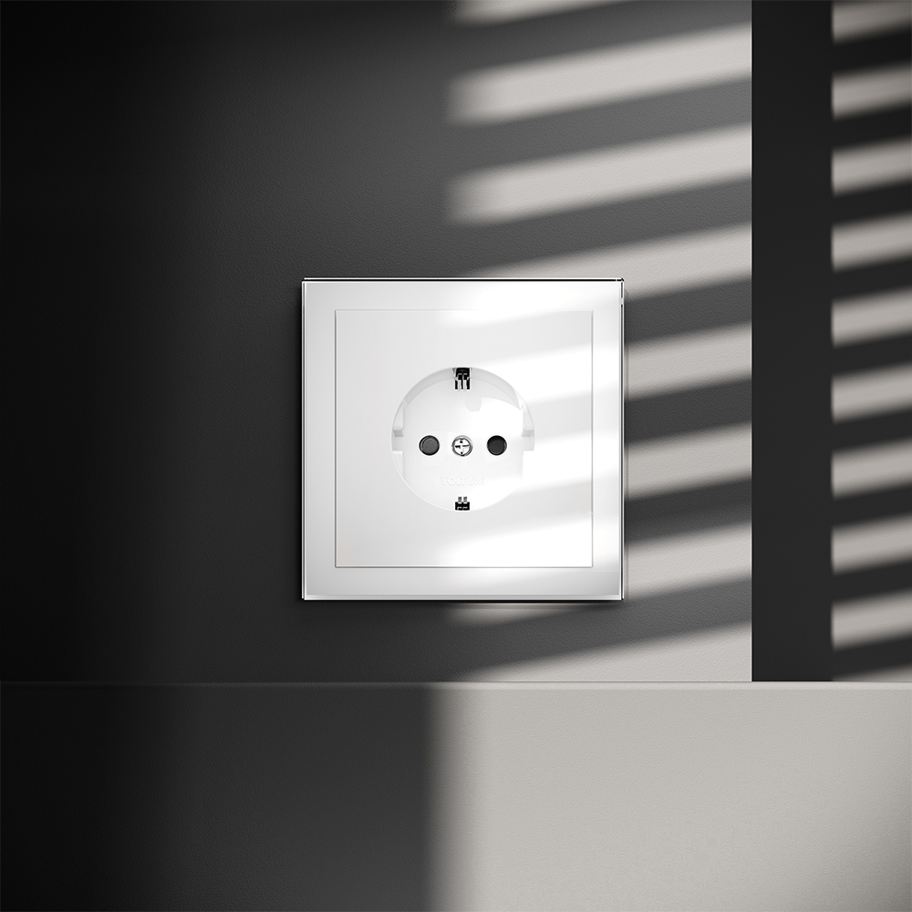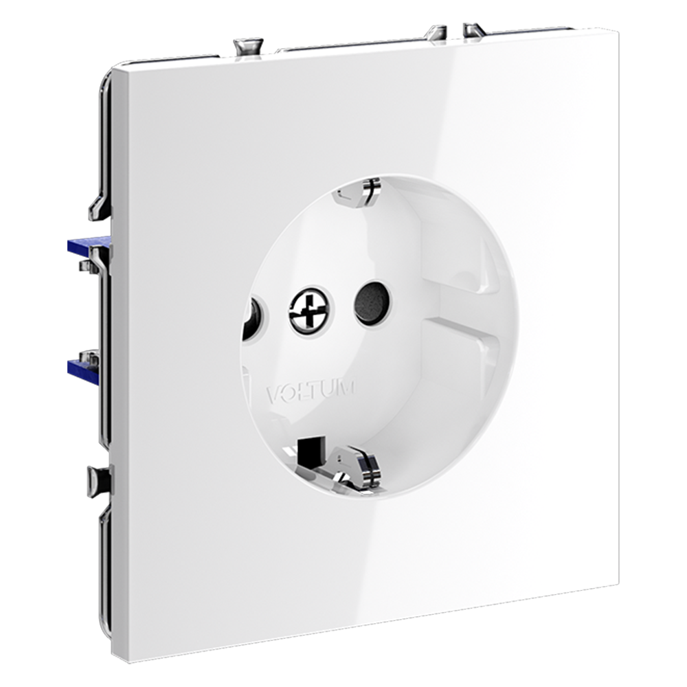 Купить "Розетка встраиваемая с заземлением и защитными шторками, 16А Voltum S70 VLS040201 (белый глянцевый)"