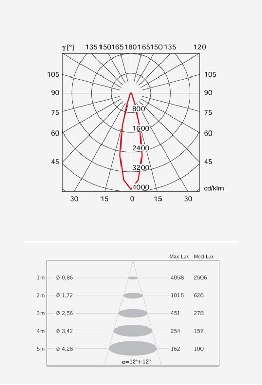 Площадь освещения,м: