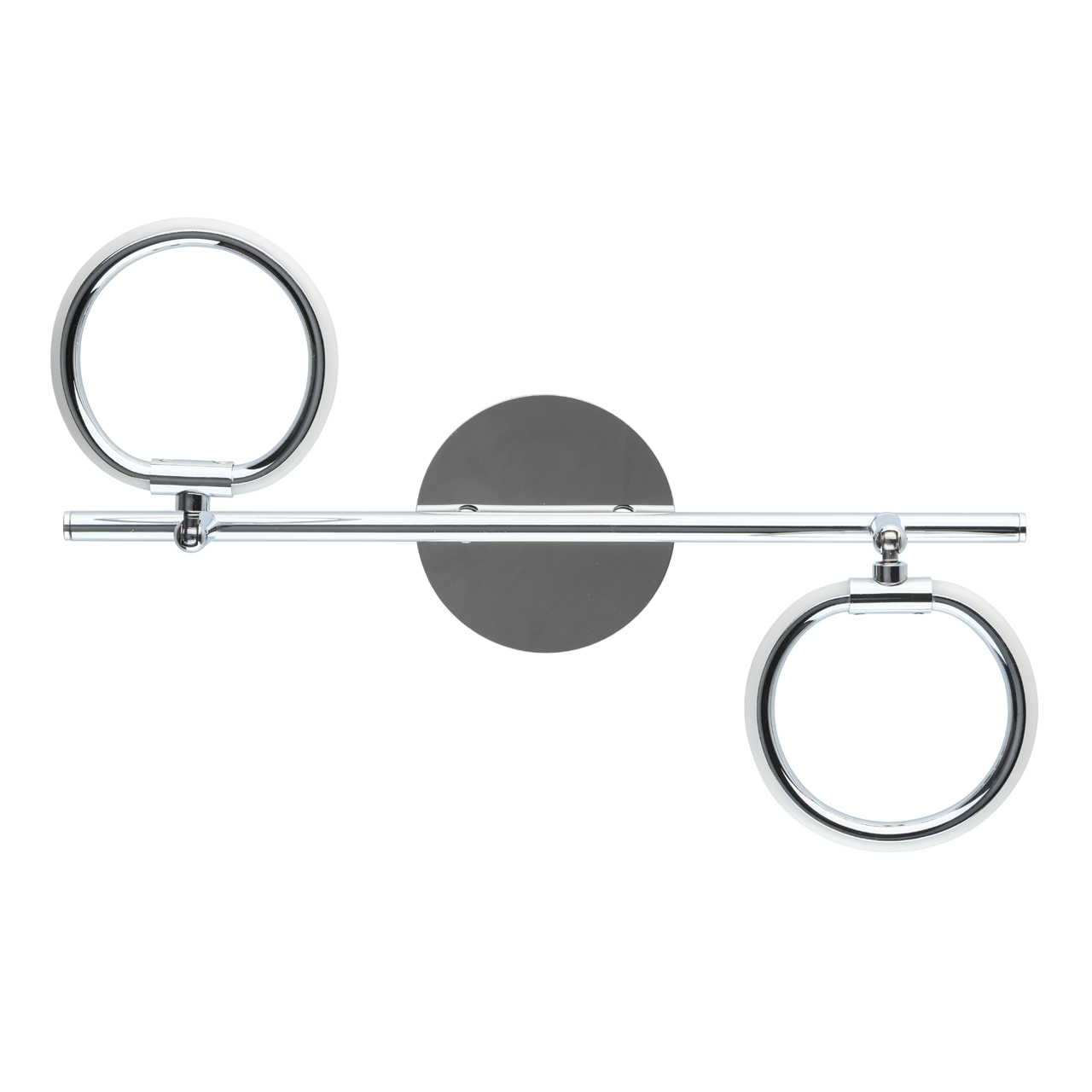 Основание выполнено из металла и гальванизировано в цвет хрома. Корпус закрыт пластиной из нержавеющей стали отполированной до зеркального блеска.Плафоны: сплав алюминия, гальванизация в цвет хрома. Светодиодный источник света типа SMD-stripe закрыт рассеивателем из белого силикона. Плафоны оборудованы поворотными механизмами: угол поворота 350˚, угол наклона 90˚.