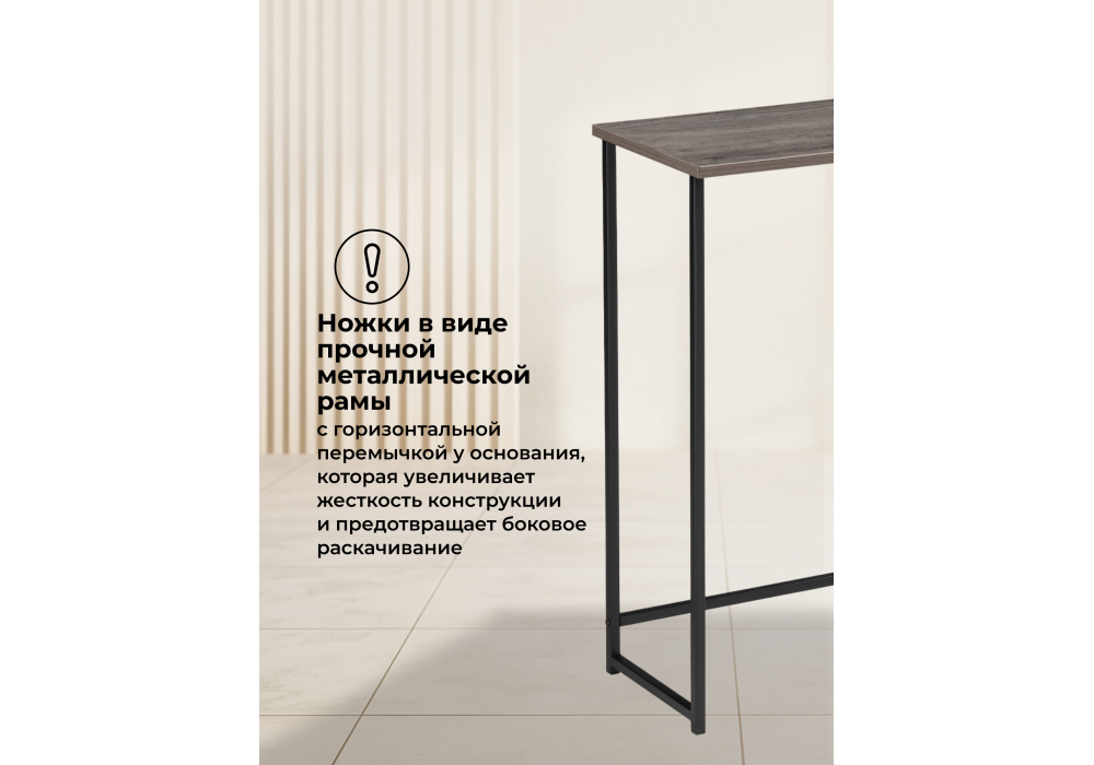 Консольный столик Феот сочетает в себе практичность и современный дизайн. Идеально подходит для прихожей, гостиной или коридора. Материал каркаса - металл; Цвет ножек - черный; Ширина - 80; Глубина - 30; Высота - 77; Длина - 80;