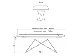 Керамический стол 140(200)х80 раскладной Woodville Старлайт snow alpin white / черный 622891