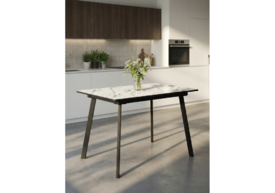Стол стеклянный раскладной 110(140)х68х76 Woodville Агни мрамор белый / черный матовый 528558