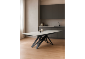 Керамический стол раздвижной Woodville Вилсон 160(220)х89х75 белый мрамор snow white / черный 612880