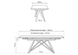 Керамический стол раскладной Woodville Джек 140(200)х80 серый мрамор larka grey / черный 612901