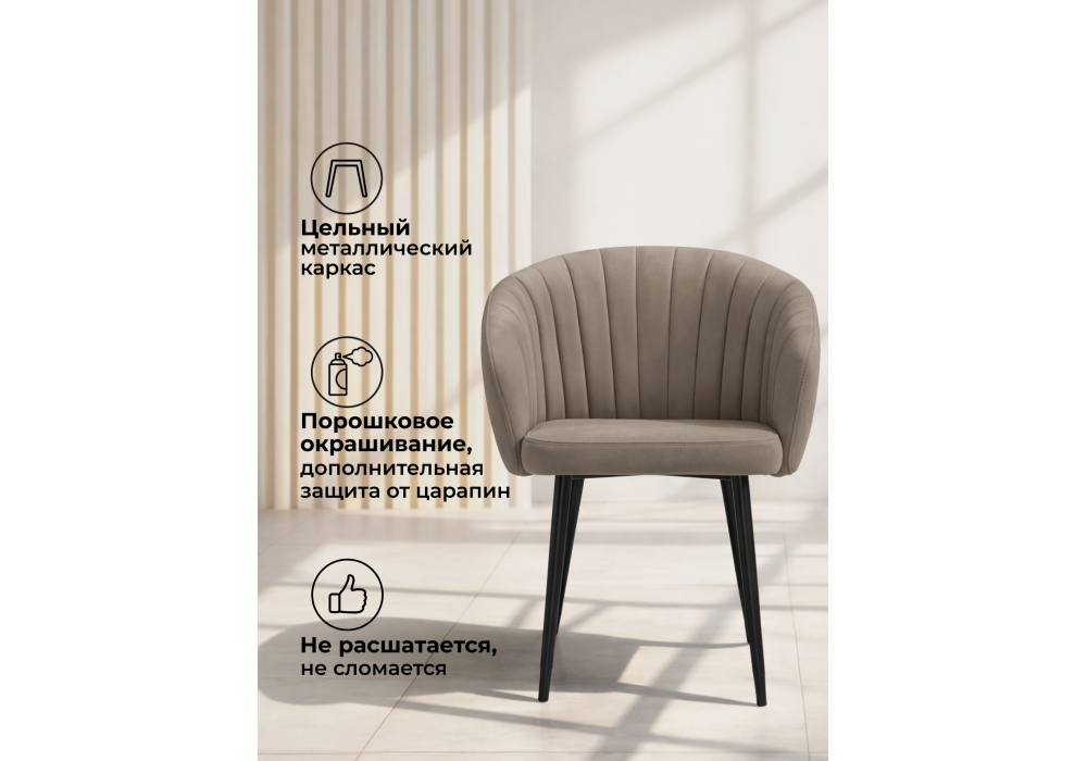 Материал каркаса - металл; Материал сиденья - велюр; Материал обивки - велюр; Цвет ножек - черный; Ширина - 60; Глубина - 53; Высота - 83; Ширина сиденья - 43; Глубина сиденья - 45; Высота сиденья - 50;