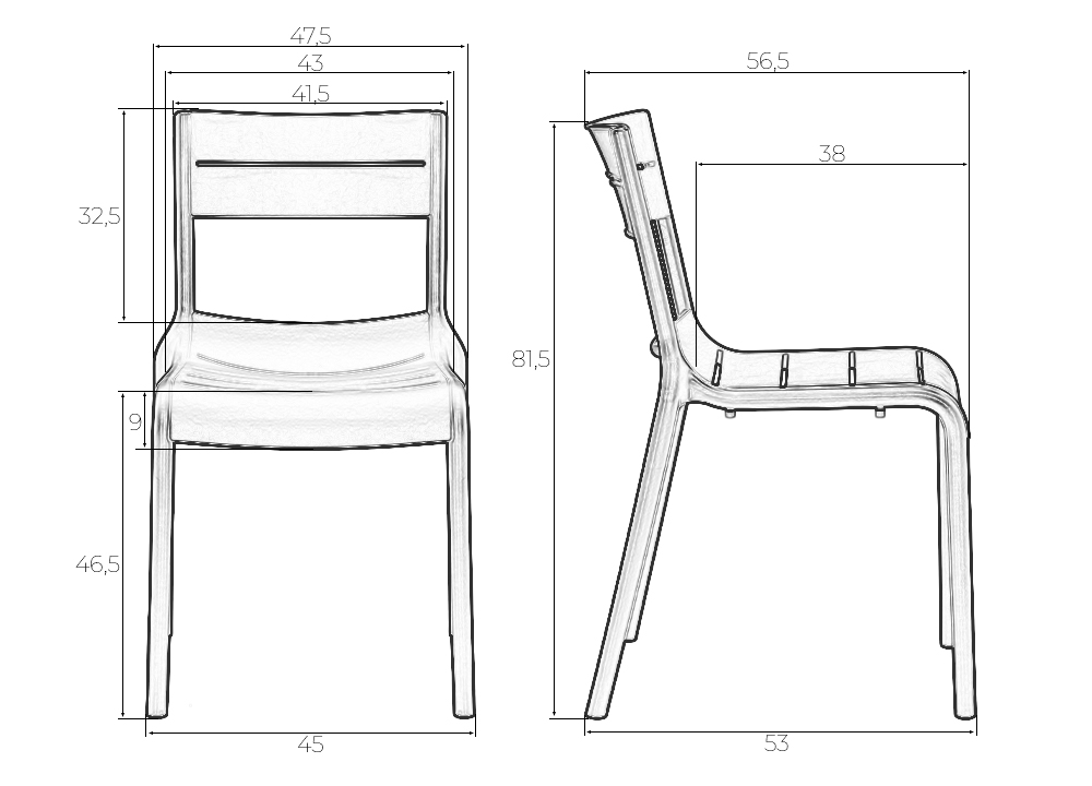 - Ширина сиденья: 430 мм