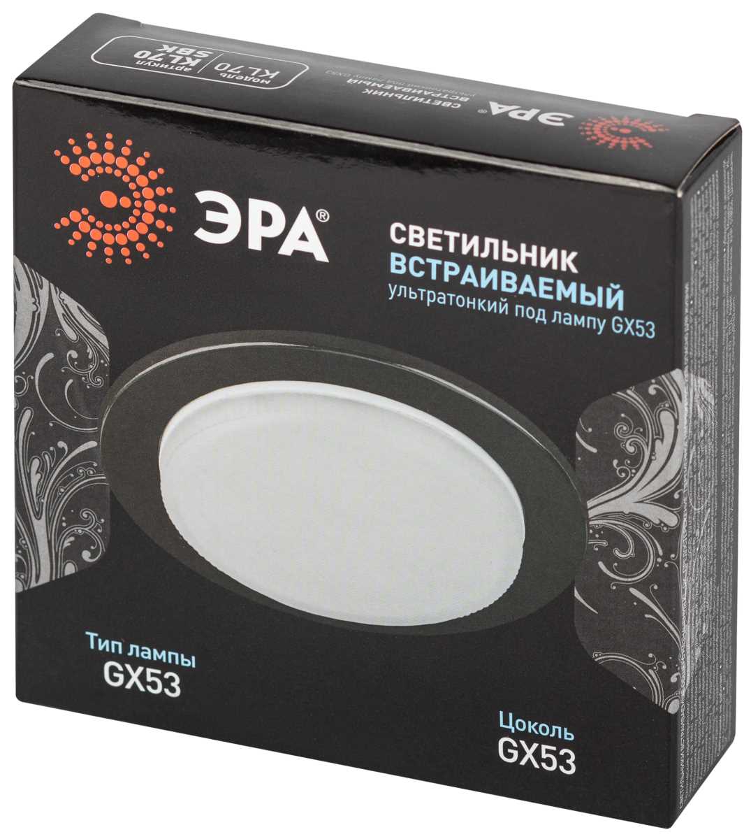 Купить "Светильник встраиваемый ЭРА KL70 SBK под лампу GX53 черный Б0057476"