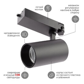 Трековый светодиодный светильник ЭРА TR5-20 COB BK Б0049053