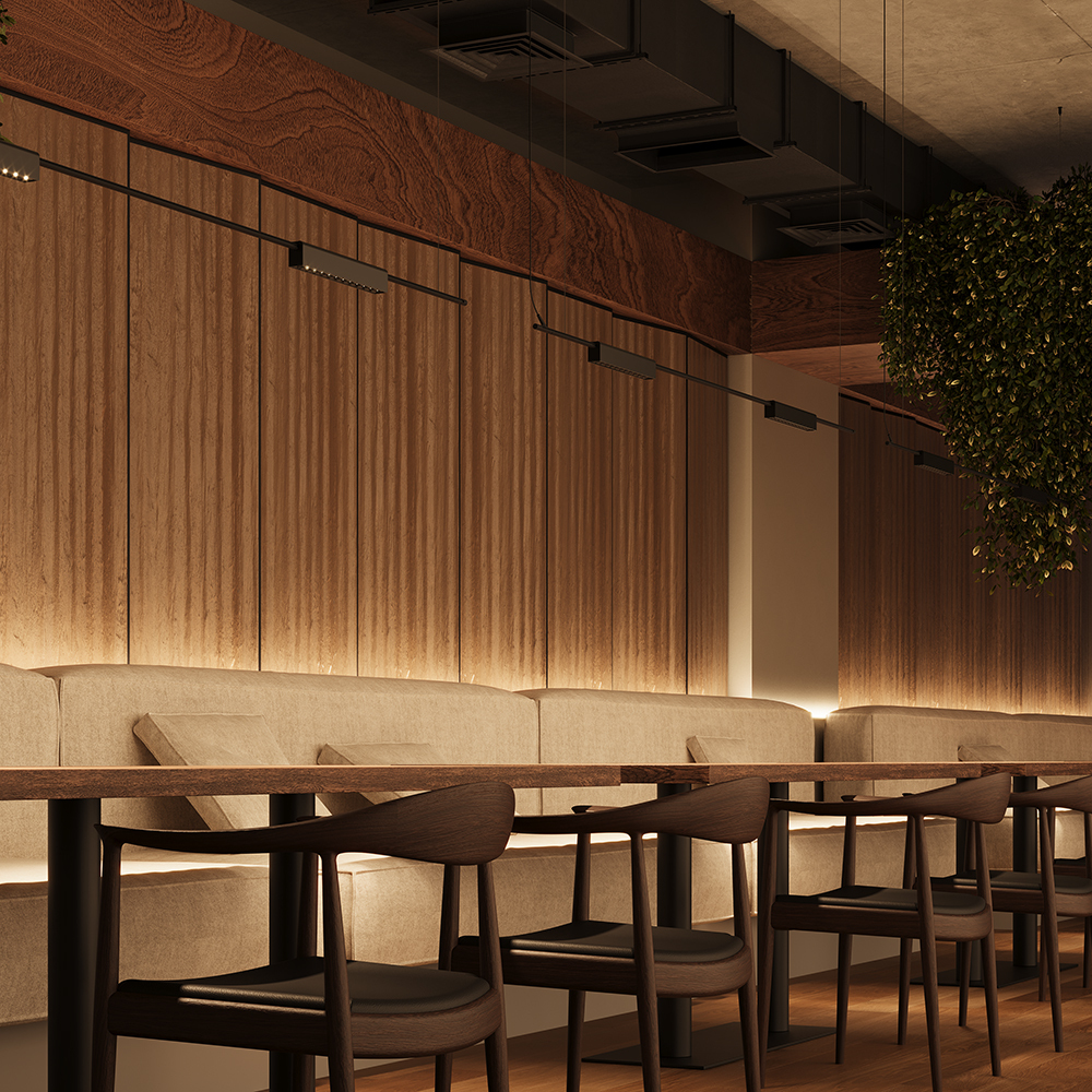 Трековый светильник с эффектом света "из ниоткуда". Корпус: алюминий, черный. LED, 12W, 3000K, CRI 90. Узкий угол рассеивания 24°. Утопленный источник света. Поворотный механизм на треке. Возможность диммирования по протоколам DALI/0-10V в группе.