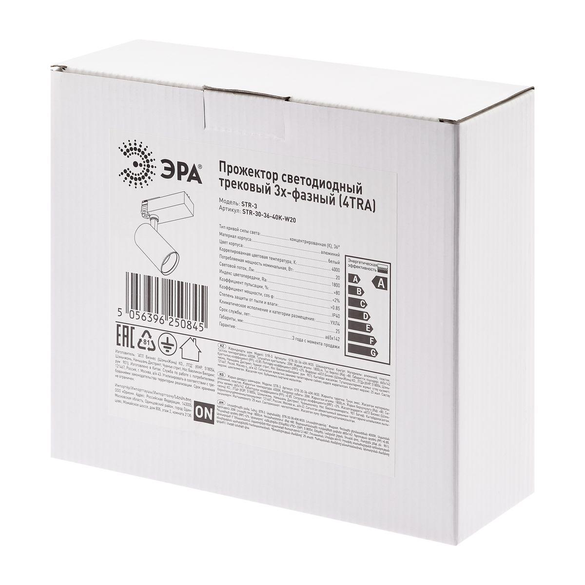 Купить "Трековый светодиодный светильник ЭРА SТR-30-36-40K-W20 Б0049752"