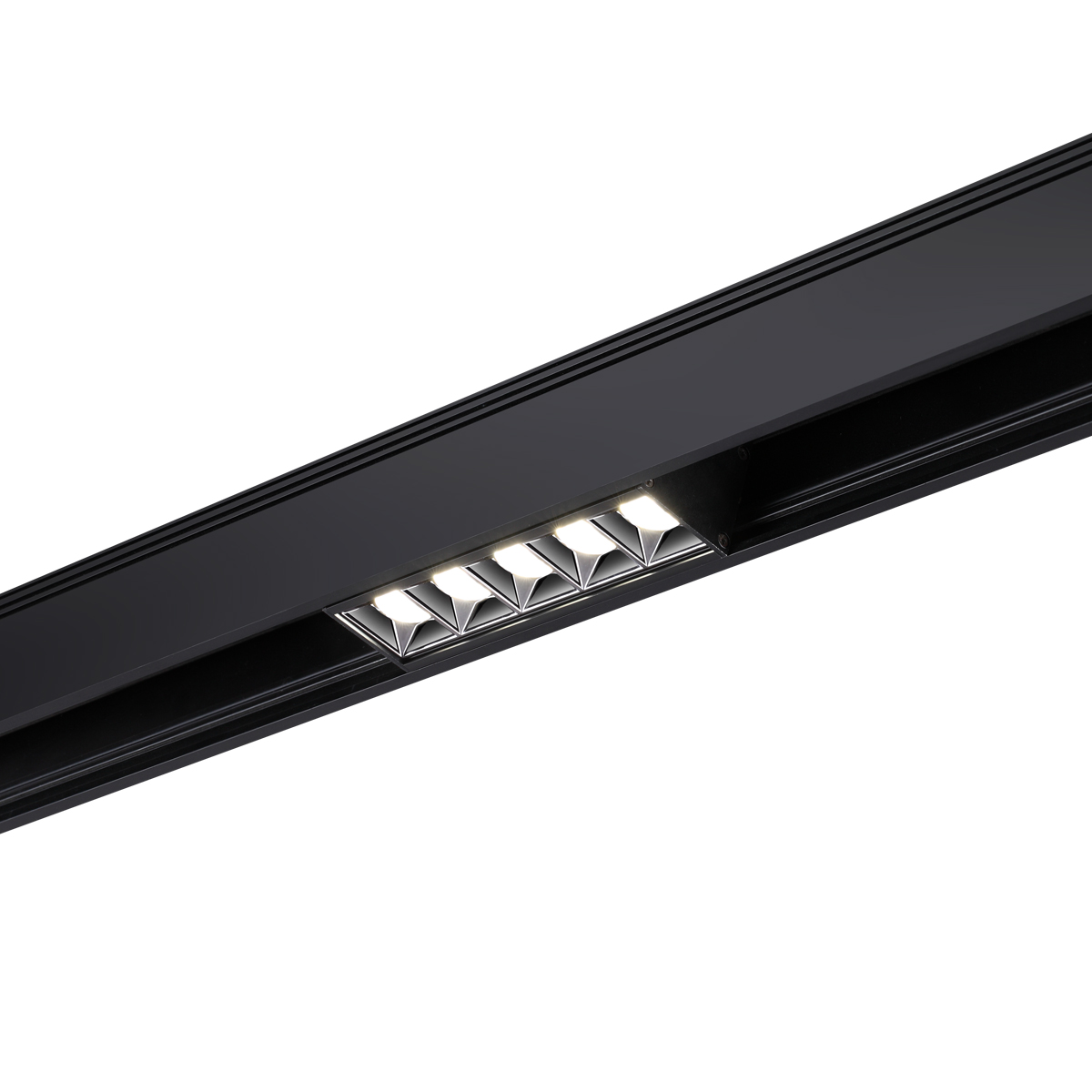 Низковольтная (48В) трековая система освещения KIT. Это новейшая замена магнитной трековой системы. В ней используется конструкция защелкивающегося соединения, чтобы зафиксировать светильник на треке.