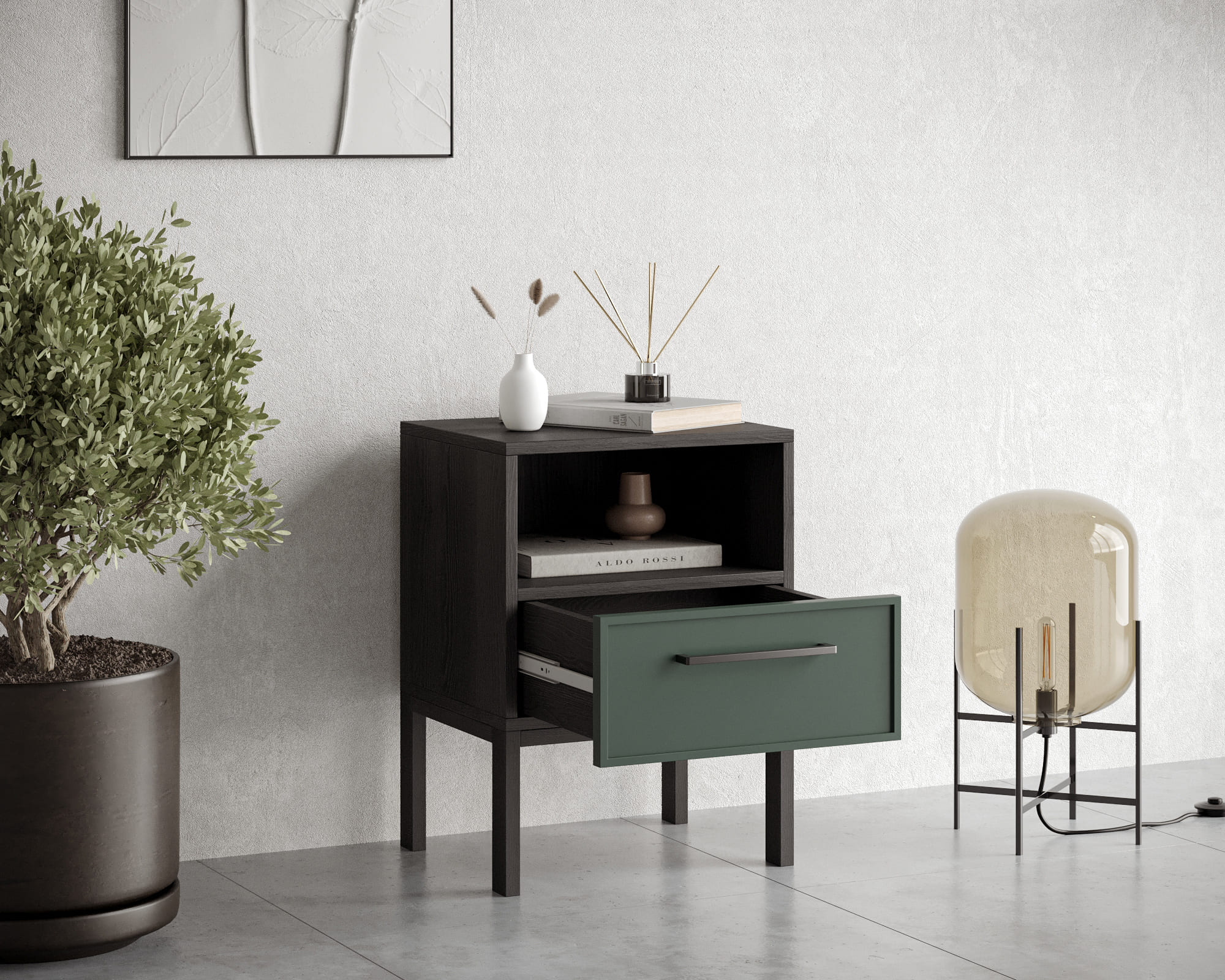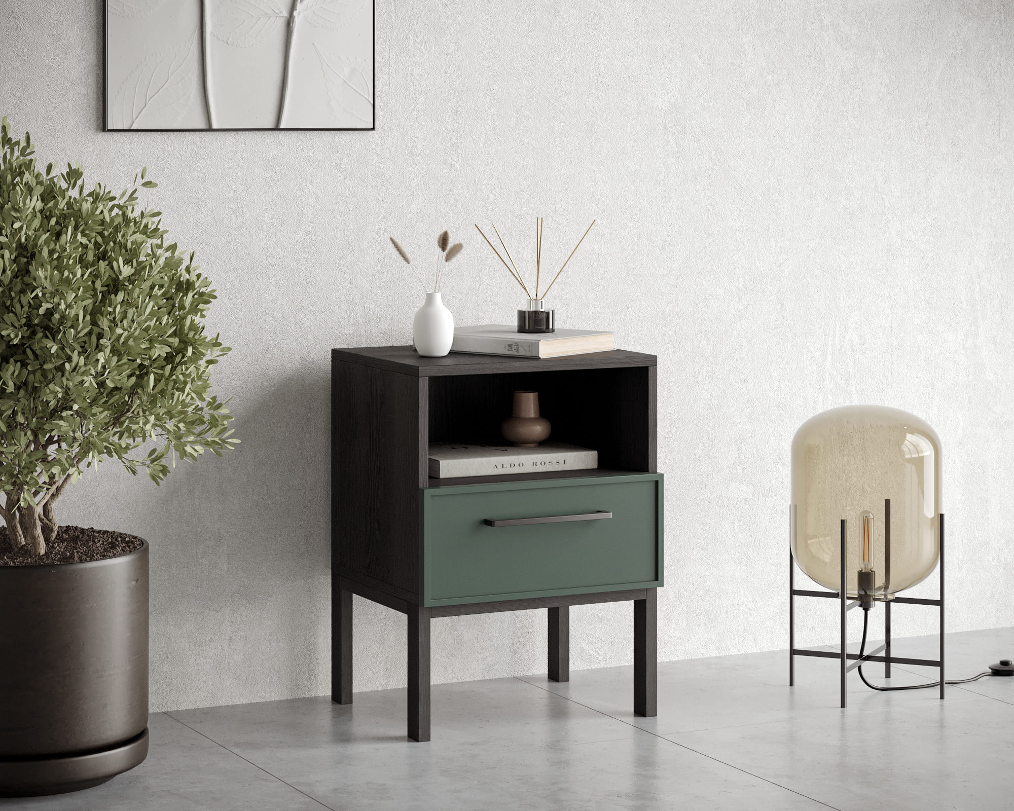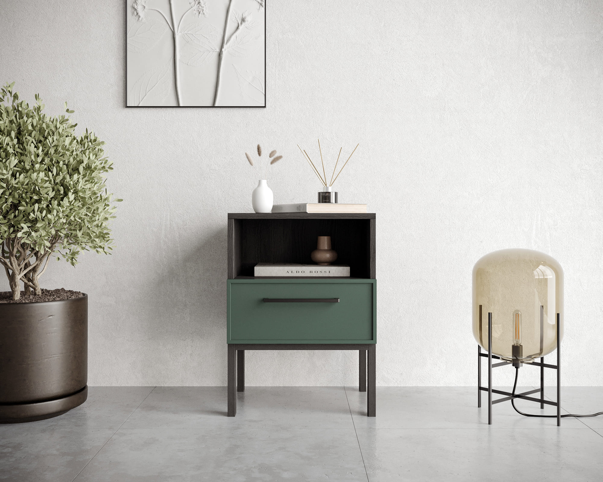 Купить "Тумбочка с нижним ящиком Николь NEM17G Зеленый"
