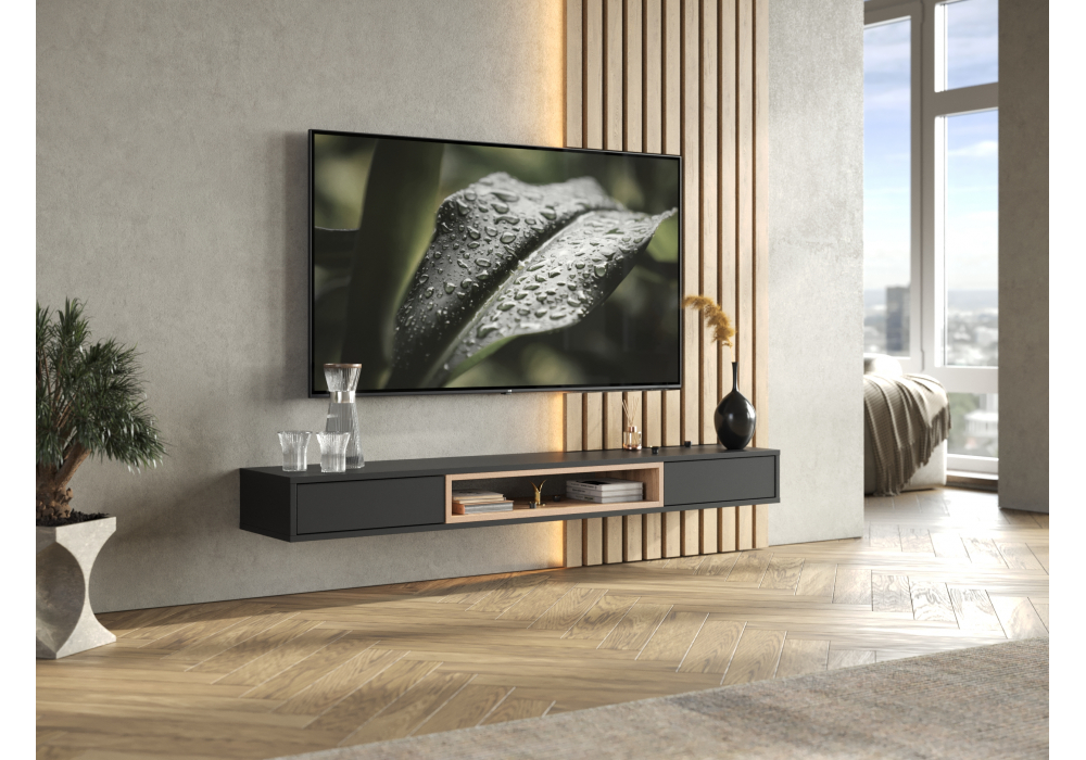 Купить "ТВ-тумба Woodville Делора 1,6м черный / дуб вотан 674716"