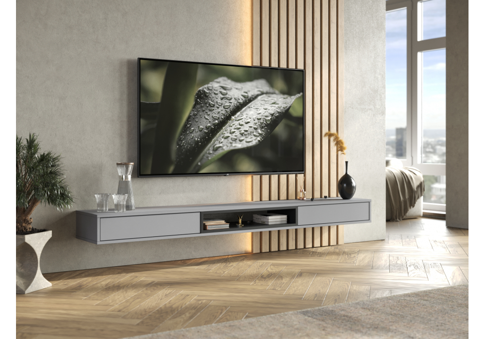 Купить "ТВ-тумба Woodville Делора 2,0 м шиншилла серая / черный 674727"