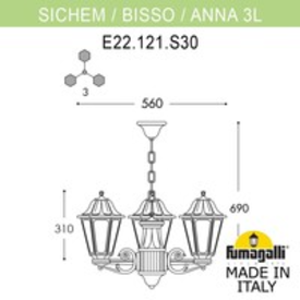 Подвесной уличный светильник Fumagalli Sichem/Anna 3l E22.120.S30.VYF1R